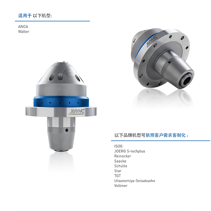 SHARK - 以 GDS 品質(zhì)打造的多范圍、高精度夾持系統(tǒng)!在3-20 mm的夾持范圍內(nèi)是您最靈活的解決方案。SHARK以過程安全的方式自動夾緊 13 mm范圍內(nèi)的任何刀徑,無需任何輔助工具,且該范圍能夠在 3 至 20 mm之間輕松調(diào)節(jié)。例如,您可以將夾頭設(shè)置為夾持3-16 mm的范圍,然后切換到 7-20 mm的范圍。適配任何帶有 SK50接口(Helitronic Vision、Power 等)的 WALTER 刀具磨床。其他品牌刀具磨床的夾頭即將陸續(xù)推出。